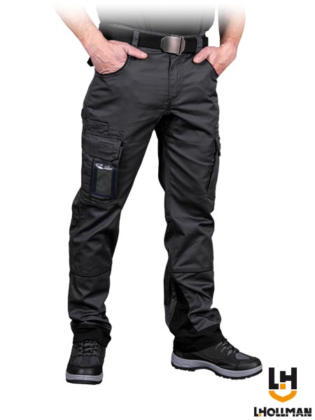 Spodnie ochronne do pasa MORTON.- 65% poliester, 35% bawełna- gramatura 260 g/m2- zapinane na guzik i zamek błyskawiczny- dwie kieszenie po bokach- dwie kieszenie z tyłu zapinane na rzep- dwie kieszenie na nogawkach zapinane na rzep- na prawej nogawce jedna wąska kieszonka na przybory np. długopis oraz jedna na identyfikator- gumki w pasie w bocznych partiach zwiększają swobodę ruchów oraz umożliwiają lepsze dopasowanie- końcówka do przypięcia kluczy- uchwyt na narzędzia- testowane na zawartość szkodliwych dla zdrowia substancji zgodnie ze standardami OEKO-TEX® Standard 100