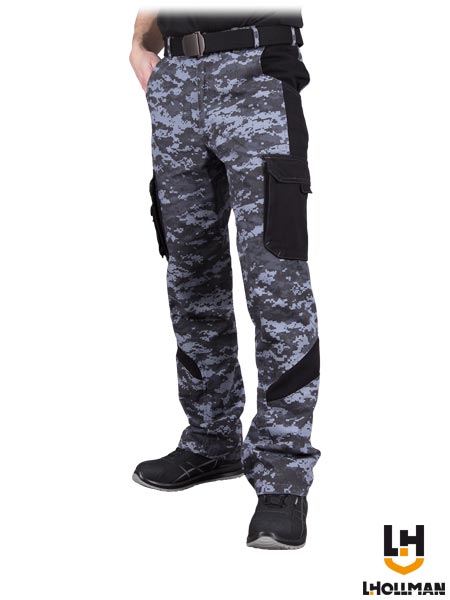 Spodnie ochronne do pasa, męskie.- tkanina o splocie canvas: 100% bawełna- gramatura 290 g/m2- zapinane na guzik oraz zamek błyskawiczny- dwie kieszenie boczne oraz dwie tylne- kieszenie na nogawkach, w tym jedna podwójna kieszeń z wąskimi przegródkami na przybory oraz jedna zapinana na rzep