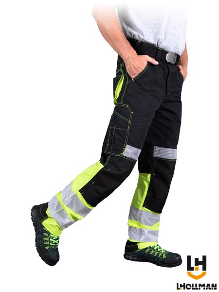 Spodnie ochronne do pasa THORVIS.- 80% poliester, 20% bawełna- gramatura 270 g/m2- zapinane na guzik oraz zamek błyskawiczny- dwie boczne kieszenie- dwie podwójne tylne kieszenie- trzy kieszenie na prawej nogawce- gumy wszyte w pasie dla regulacji tęgości, dzięki czemu spodnie lepiej dopasowują się do sylwetki- końcówka do przypięcia kluczy- odblaskowe elementy na tylnych kieszeniach- pętelki umożliwiające doczepienie dodatkowych akcesoriów- na kolanach kieszenie na wkładki nakolannikowe- w dolnej partii spodni znajdują się odblaskowe pasy oraz nad kolanami pasy segmentowe, zapewniające dobrą widoczność użytkownika- idealne dla drogowców i innych służb porządkowych- spełnia wymogi normy EN ISO 20471 (klasa 1)
