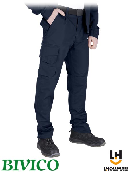 Spodnie ochronne do pasa, męskie.- tkanina o splocie twill: 65% poliester, 35% bawełna- gramatura 270 g/m2- zapinane na guzik oraz zamek błyskawiczny- dwie kieszenie boczne oraz dwie tyle zapinane na napy- trzy kieszenie na nogawkach, w tym jedna podłużna z przegródkami- kieszenie na wkładki nakolannikowe wkładane od dołu- końcówka do przypięcia kluczy- fason: REGULAR
