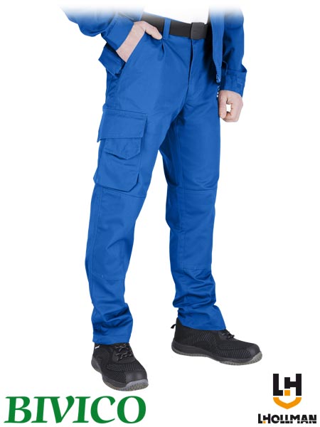 Spodnie ochronne do pasa, męskie.- tkanina o splocie twill: 65% poliester, 35% bawełna- gramatura 270 g/m2- zapinane na guzik oraz zamek błyskawiczny- dwie kieszenie boczne oraz dwie tyle zapinane na napy- trzy kieszenie na nogawkach, w tym jedna podłużna z przegródkami- kieszenie na wkładki nakolannikowe wkładane od dołu- końcówka do przypięcia kluczy- fason: REGULAR