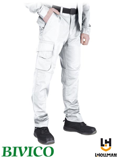 Spodnie ochronne do pasa, męskie.- tkanina o splocie twill: 65% poliester, 35% bawełna- gramatura 270 g/m2- zapinane na guzik oraz zamek błyskawiczny- dwie kieszenie boczne oraz dwie tyle zapinane na napy- trzy kieszenie na nogawkach, w tym jedna podłużna z przegródkami- kieszenie na wkładki nakolannikowe wkładane od dołu- końcówka do przypięcia kluczy- fason: REGULAR