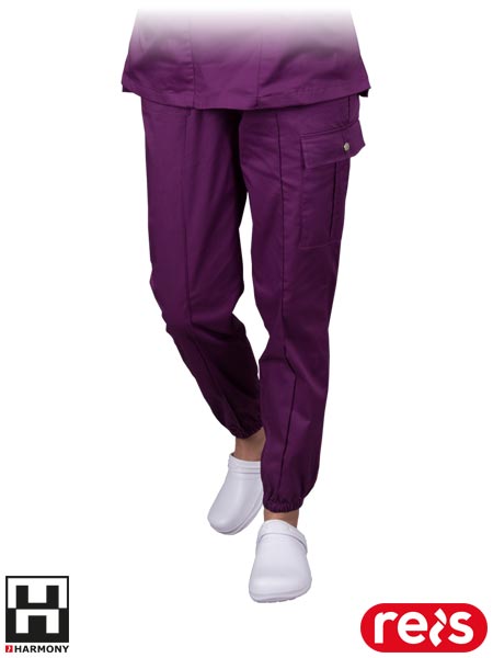 Spodnie ochronne do pasa OSSIA, damskie.- tkanina: 52% bawełna, 45% poliester, 3% elastan- gramatura 150 g/m2- pięć zewnętrznych kieszeni: dwie boczne z przodu, jedna na lewej nogawce zapinana na nap i dwie z tyłu zapinane na napy- troczek oraz rozciągliwa gumka w pasie pozwalające lepiej dopasować rozmiar- nogawki zakończone ściągaczami- idealne dla branży kosmetycznej, medycznej, jak i chemicznej- stosowane do pracy w laboratoriach- pranie w temperaturze do 40°C