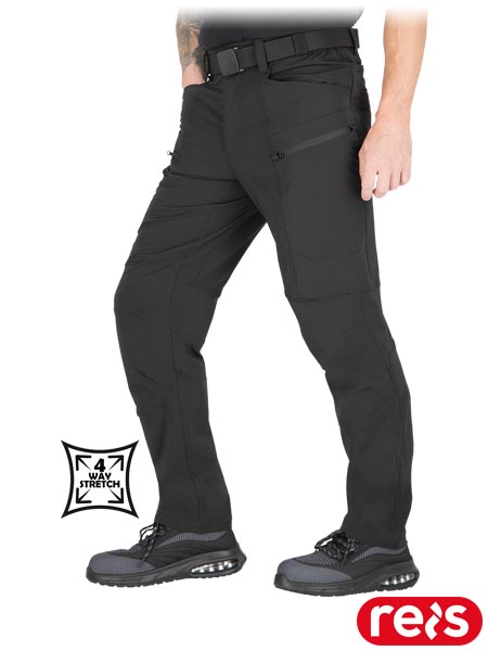 Spodnie ochronne do pasa, męskie.- tkanina: 4-kierunkowy stretch 90% poliester, 10% elastan- gramatura 240 g/m2- 4-kierunkowy stretch - materiał, który rozciąga się we wszystkich kierunkach- zapinane na guzik oraz zamek błyskawiczny- dwie kieszenie boczne oraz dwie tylne- kieszenie na nogawkach zapinane na suwak- wyprofilowane kolana- gumka w pasie w bocznych partiach umożliwiająca lepsze dopasowanie- fason: REGULAR