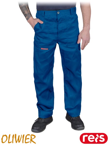Spodnie ochronne do pasa typu Oliwier.- tkanina: 65% poliester, 35% bawełna- gramatura 210-220 g/m2- możliwość regulacji w pasie dzięki gumce w bocznych partiach- dwie boczne kieszenie- dodatkowa kieszeń z tyłu spodni