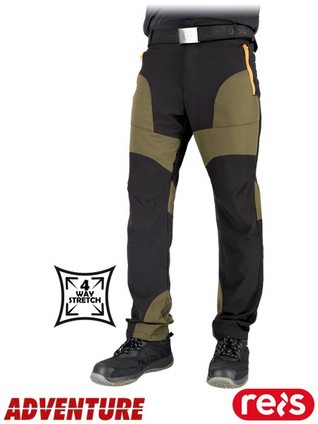 Spodnie ochronne do pasa, męskie.- tkanina: 4-kierunkowy stretch 94% poliester, 6% elastan- gramatura 140 g/m2- 4-kierunkowy stretch - materiał, który rozciąga się we wszystkich kierunkach- zapinane na guzik oraz zamek błyskawiczny- dwie kieszenie boczne oraz dwie tylne zapinane na suwak- wyprofilowane kolana- gumka w pasie w bocznych partiach umożliwiająca lepsze dopasowanie- fason: REGULAR