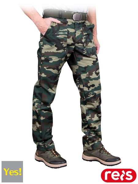 Spodnie ochronne do pasa YES, męskie.- tkanina: 65% poliester, 35% bawełna- gramatura 250 g/m2- zapinane na guziki zasłonięte patką- dwie kieszenie boczne- podłużna kieszeń na prawej nogawce- gumka w pasie umożliwiająca lepsze dopasowanie