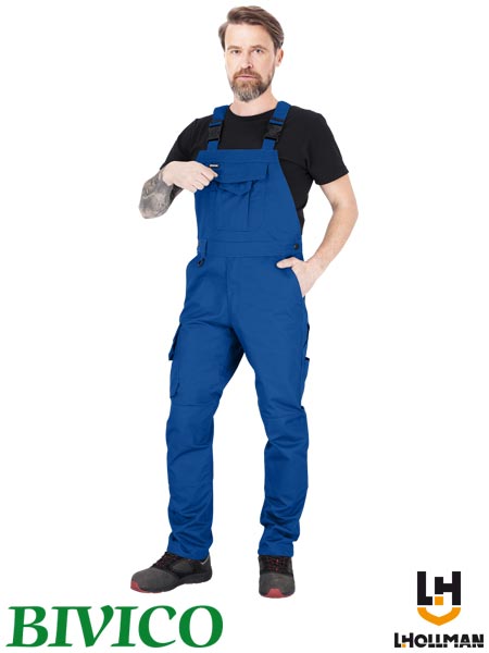 Spodnie ochronne ogrodniczki, męskie.- tkanina: 65% poliester, 35% bawełna- gramatura 270 g/m2- zapinane na zamek błyskawiczny zasłonięty patką- podwójna kieszeń na klatce piersiowej zapinana na napy oraz dodatkowa przegródka- dwie kieszenie boczne oraz dwie tylne zapinane na napy- trzy kieszenie na nogawkach, w tym jedna podłużna z przegródkami- kieszenie na wkładki nakolannikowe wkładane od dołu- możliwość regulacji długości za pomocą szelek, które dodatkowo mają w tylnej partii gumkę- guziki w pasie umożliwiające lepsze dopasowanie- końcówka do przypięcia kluczy- fason: REGULAR