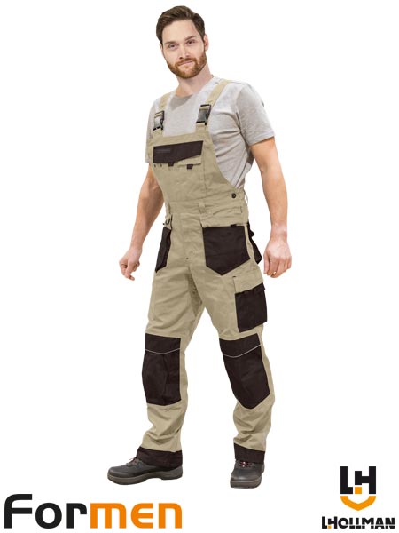 Spodnie ochronne ogrodniczki FORMEN.- tkanina: 65% poliester, 35% bawełna o gramaturze 270 g/m2- powłoka 100% poliester OXFORD 600D- dwie kieszenie z tyłu na rzepy oraz dwie boczne podwójne- jedna kieszeń na nogawce na rzepy z dodatkowymi kieszonkami na akcesoria, jedna boczna podłużna oraz jedna na klatce piersiowej z kieszonkami na telefon oraz przybory- duża liczba kieszeni zwiększa funkcjonalność spodni- końcówka do przypięcia kluczy- pętelki umożliwiające doczepienie dodatkowych akcesoriów- możliwość regulacji w pasie oraz długości za pomocą szelek- guma w tylnej partii zwiększająca swobodę ruchów- na kolanach kieszenie na wkładki nakolannikowe- na kieszeniach, kolanach oraz na dole nogawek dodatkowe wzmocnienie co zwiększa wytrzymałość spodni na przetarcia- staranne wykonanie oraz zwiększona wytrzymałość zapewniają wysoki komfort użytkowania- testowane na zawartość szkodliwych dla zdrowia substancji zgodnie ze standardami OEKO-TEX® Standard 100- produkt w wersji NEW: nowy krój kieszeni, „S” shape - profilowane nogawki zapewniają lepsze dopasowanie się do sylwetki użytkownika, w pasie taśma z silikonowym nakropieniem zapobiegająca wyślizgiwaniu się bluzek, zwiększona wytrzymałość dzięki zastosowaniu wstawek z materiału Cordura