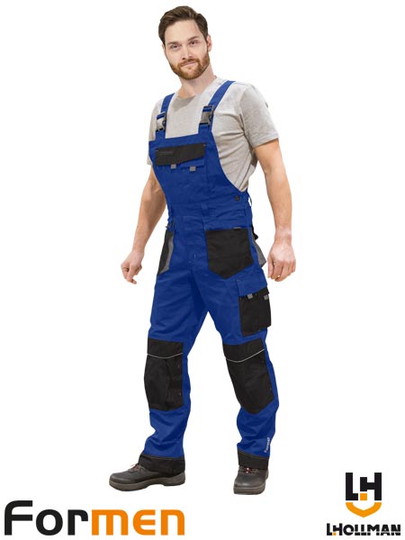 Spodnie ochronne ogrodniczki FORMEN.- tkanina: 65% poliester, 35% bawełna o gramaturze 270 g/m2- powłoka 100% poliester OXFORD 600D- dwie kieszenie z tyłu na rzepy oraz dwie boczne podwójne- jedna kieszeń na nogawce na rzepy z dodatkowymi kieszonkami na akcesoria, jedna boczna podłużna oraz jedna na klatce piersiowej z kieszonkami na telefon oraz przybory- duża liczba kieszeni zwiększa funkcjonalność spodni- końcówka do przypięcia kluczy- pętelki umożliwiające doczepienie dodatkowych akcesoriów- możliwość regulacji w pasie oraz długości za pomocą szelek- guma w tylnej partii zwiększająca swobodę ruchów- na kolanach kieszenie na wkładki nakolannikowe- na kieszeniach, kolanach oraz na dole nogawek dodatkowe wzmocnienie co zwiększa wytrzymałość spodni na przetarcia- staranne wykonanie oraz zwiększona wytrzymałość zapewniają wysoki komfort użytkowania- testowane na zawartość szkodliwych dla zdrowia substancji zgodnie ze standardami OEKO-TEX® Standard 100- produkt w wersji NEW: nowy krój kieszeni, „S” shape - profilowane nogawki zapewniają lepsze dopasowanie się do sylwetki użytkownika, w pasie taśma z silikonowym nakropieniem zapobiegająca wyślizgiwaniu się bluzek, zwiększona wytrzymałość dzięki zastosowaniu wstawek z materiału Cordura