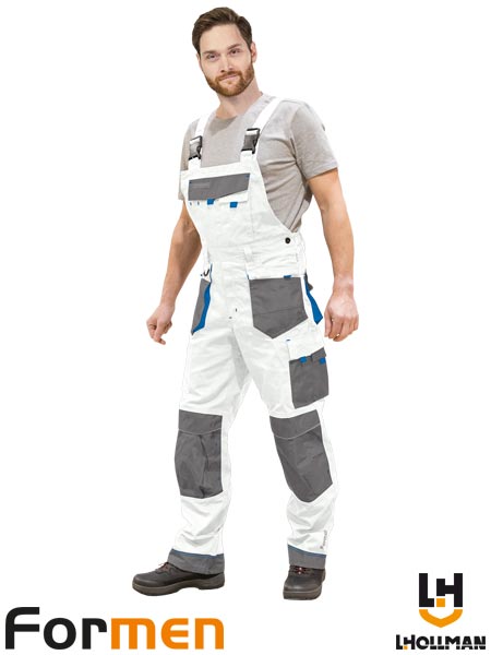 Spodnie ochronne ogrodniczki FORMEN.- tkanina: 65% poliester, 35% bawełna o gramaturze 270 g/m2- powłoka 100% poliester OXFORD 600D- dwie kieszenie z tyłu na rzepy oraz dwie boczne podwójne- jedna kieszeń na nogawce na rzepy z dodatkowymi kieszonkami na akcesoria, jedna boczna podłużna oraz jedna na klatce piersiowej z kieszonkami na telefon oraz przybory- duża liczba kieszeni zwiększa funkcjonalność spodni- końcówka do przypięcia kluczy- pętelki umożliwiające doczepienie dodatkowych akcesoriów- możliwość regulacji w pasie oraz długości za pomocą szelek- guma w tylnej partii zwiększająca swobodę ruchów- na kolanach kieszenie na wkładki nakolannikowe- na kieszeniach, kolanach oraz na dole nogawek dodatkowe wzmocnienie co zwiększa wytrzymałość spodni na przetarcia- staranne wykonanie oraz zwiększona wytrzymałość zapewniają wysoki komfort użytkowania- testowane na zawartość szkodliwych dla zdrowia substancji zgodnie ze standardami OEKO-TEX® Standard 100- produkt w wersji NEW: nowy krój kieszeni, „S” shape - profilowane nogawki zapewniają lepsze dopasowanie się do sylwetki użytkownika, w pasie taśma z silikonowym nakropieniem zapobiegająca wyślizgiwaniu się bluzek, zwiększona wytrzymałość dzięki zastosowaniu wstawek z materiału Cordura