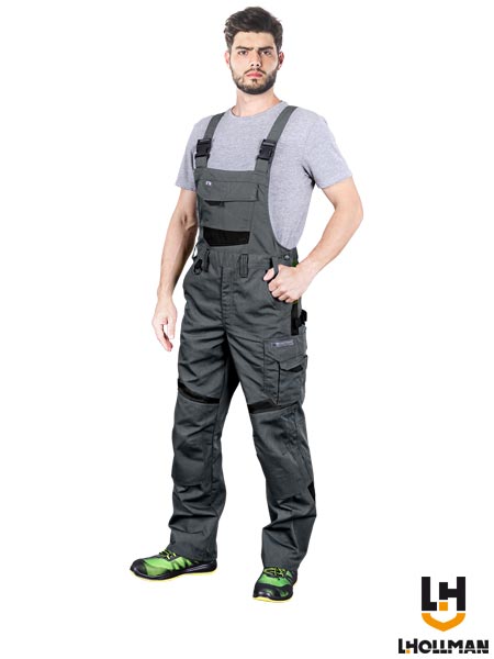 Spodnie ochronne ogrodniczki TANZO.- tkanina: 65% poliester, 35% bawełna o gramaturze 270 g/m2- wstawki z kontrastowego materiału 65% poliester, 35% bawełna o gramaturze 195 g/m2- jedna kieszeń na klatce piersiowej zapinana na rzep- trzy boczne kieszenie, w tym jedna zapinana na suwak- dwie tylne kieszenie zapinane na rzep- kieszenie na nogawkach, w tym na telefon komórkowy- gumy wszyte w pasie dla regulacji tęgości, dzięki czemu spodnie lepiej dopasowują się do sylwetki- możliwość regulacji długości za pomocą szelek- końcówka do przypięcia kluczy- pętelki umożliwiające doczepienie dodatkowych akcesoriów- na kolanach kieszenie na wkładki nakolannikowe- modne połączenie kolorów nadaje atrakcyjny wygląd