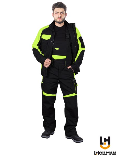 Spodnie ochronne ocieplane ogrodniczki TANZO, tkane.- powłoka 65% poliester, 35% bawełna o gramaturze 270 g/m2- podszewka 100% poliester typu tafta o gramaturze 60 g/m2- wyściółka 100% poliester o gramaturze 150 g/m2- wstawki z kontrastowego materiału 65% poliester, 35% bawełna o gramaturze 195 g/m2- jedna kieszeń na klatce piersiowej zapinana na rzep- trzy boczne kieszenie, w tym jedna zapinana na suwak- dwie tylne kieszenie zapinane na rzep- kieszenie na nogawkach, w tym na telefon komórkowy- gumy wszyte w pasie dla regulacji tęgości, dzięki czemu spodnie lepiej dopasowują się do sylwetki- możliwość regulacji długości za pomocą szelek- końcówka do przypięcia kluczy- pętelki umożliwiające doczepienie dodatkowych akcesoriów- na kolanach kieszenie na wkładki nakolannikowe- modne połączenie kolorów nadaje atrakcyjny wygląd