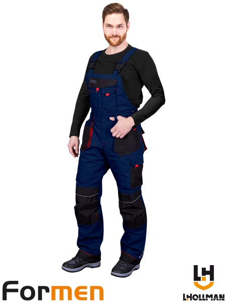 Spodnie ochronne ocieplane ogrodniczki FORMEN.- powłoka 65% poliester, 35% bawełna o gramaturze 270 g/m2- wyściółka 100% poliester o gramaturze 130 g/m2- podszewka 100% poliester typu tafta 190T o gramaturze 50 g/m2- dwie kieszenie z tyłu na rzepy oraz dwie boczne podwójne- jedna kieszeń na nogawce na rzepy z dodatkowymi kieszonkami na akcesoria, jedna boczna podłużna oraz jedna na klatce piersiowej z kieszonkami na telefon oraz przybory- duża liczba kieszeni zwiększa funkcjonalność spodni- końcówka do przypięcia kluczy- pętelki umożliwiające doczepienie dodatkowych akcesoriów- możliwość regulacji w pasie, długości za pomocą szelek oraz szerokości nogawek w dolnej części spodni za pomocą suwaków- guma w tylnej partii zwiększająca swobodę ruchów- na kolanach kieszenie na wkładki nakolannikowe- na kieszeniach, kolanach oraz na dole nogawek dodatkowe wzmocnienie co zwiększa wytrzymałość spodni na przetarcia- staranne wykonanie oraz zwiększona wytrzymałość zapewniają wysoki komfort użytkowania- certyfikat OEKO-TEX® Standard 100 (testy na zawartość szkodliwych dla zdrowia substancji)