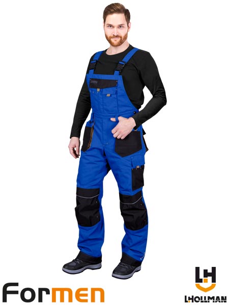 Spodnie ochronne ocieplane ogrodniczki FORMEN.- powłoka 65% poliester, 35% bawełna o gramaturze 270 g/m2- wyściółka 100% poliester o gramaturze 130 g/m2- podszewka 100% poliester typu tafta 190T o gramaturze 50 g/m2- dwie kieszenie z tyłu na rzepy oraz dwie boczne podwójne- jedna kieszeń na nogawce na rzepy z dodatkowymi kieszonkami na akcesoria, jedna boczna podłużna oraz jedna na klatce piersiowej z kieszonkami na telefon oraz przybory- duża liczba kieszeni zwiększa funkcjonalność spodni- końcówka do przypięcia kluczy- pętelki umożliwiające doczepienie dodatkowych akcesoriów- możliwość regulacji w pasie, długości za pomocą szelek oraz szerokości nogawek w dolnej części spodni za pomocą suwaków- guma w tylnej partii zwiększająca swobodę ruchów- na kolanach kieszenie na wkładki nakolannikowe- na kieszeniach, kolanach oraz na dole nogawek dodatkowe wzmocnienie co zwiększa wytrzymałość spodni na przetarcia- staranne wykonanie oraz zwiększona wytrzymałość zapewniają wysoki komfort użytkowania- certyfikat OEKO-TEX® Standard 100 (testy na zawartość szkodliwych dla zdrowia substancji)