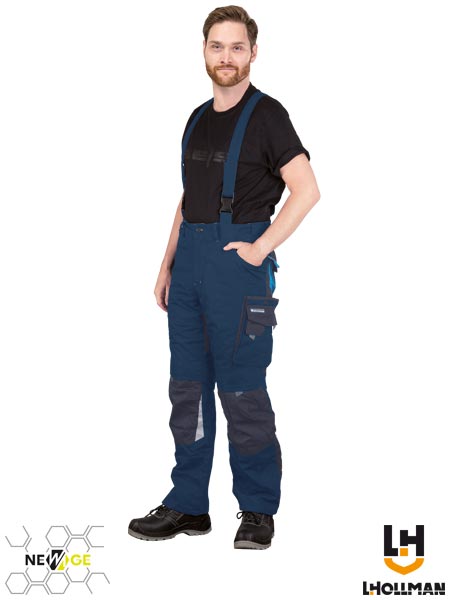 Spodnie ochronne ogrodniczki NEW AGE wykonane z materiału typu canvas.- powłoka 65% poliester, 35% bawełna o gramaturze 270 g/m2- wyściółka 100% poliester o gramaturze 130 g/m2- podszewka 100% poliester typu tafta 210T o gramaturze 50 g/m2- możliwość odsunięcia szelek, dzięki czemu otrzymamy spodnie do pasa- cztery boczne kieszenie, w tym jedna zapinana na suwak- dwie tylne kieszenie zapinane na rzep- kieszenie na nogawkach, w tym na telefon komórkowy- gumy wszyte w pasie dla regulacji tęgości, dzięki czemu spodnie lepiej dopasowują się do sylwetki- na kolanach kieszenie na wkładki nakolannikowe- odblaskowe elementy- zwiększona wytrzymałość dzięki zastosowaniu wstawek z materiału Cordura- nowoczesny design oraz kolorystyka