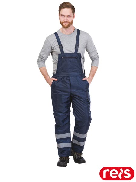 Spodnie ochronne ogrodniczki ocieplane.- powłoka 100% poliester Oxford 200D powlekany poliuretanem- wyściółka 100% poliester o gramaturze 130 g/m2- podszewka 100% poliester typu tafta 190T- odblaskowe pasy na dole nogawek zapewniające lepszą widoczność- możliwość regulacji w długości szelkami, które dodatkowo w tylnej partii mają gumę, zwiększającą swobodę ruchów- dwie boczne kieszenie- dodatkowa kieszeń w górnej partii spodni