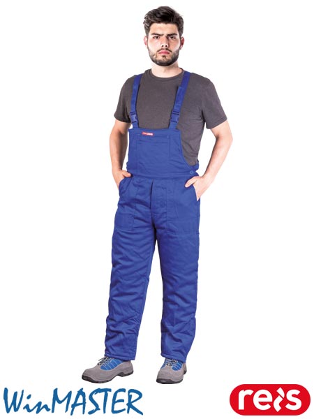 Spodnie ochronne ocieplane ogrodniczki, męskie.- tkanina: 65% poliester, 35% bawełna o gramaturze 180 g/m2- wyściółka 100% poliester o gramaturze 180 g/m2- pikowana podszewka 100% poliester tafta 190T o gramaturze 50 g/m2- zapinane na guziki zasłonięte patką- dwie kieszenie na klatce piersiowej w tym jedna zapinana na suwak oraz jedna z przegródką- dwie kieszenie boczne- kieszeń podłużna na prawej nogawce- możliwość regulacji długości za pomocą szelek, które dodatkowo mają w tylnej partii gumkę- gumka w pasie w tylnej partii oraz guziki umożliwiające lepsze dopasowanie- fason: REGULAR
