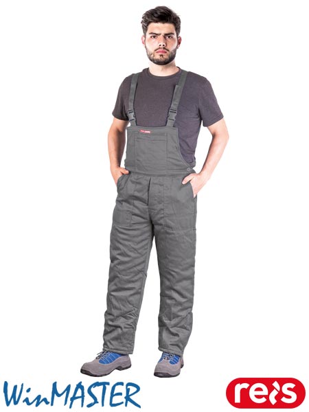 Spodnie ochronne ocieplane ogrodniczki, męskie.- tkanina: 65% poliester, 35% bawełna o gramaturze 180 g/m2- wyściółka 100% poliester o gramaturze 180 g/m2- pikowana podszewka 100% poliester tafta 190T o gramaturze 50 g/m2- zapinane na guziki zasłonięte patką- dwie kieszenie na klatce piersiowej w tym jedna zapinana na suwak oraz jedna z przegródką- dwie kieszenie boczne- kieszeń podłużna na prawej nogawce- możliwość regulacji długości za pomocą szelek, które dodatkowo mają w tylnej partii gumkę- gumka w pasie w tylnej partii oraz guziki umożliwiające lepsze dopasowanie- fason: REGULAR