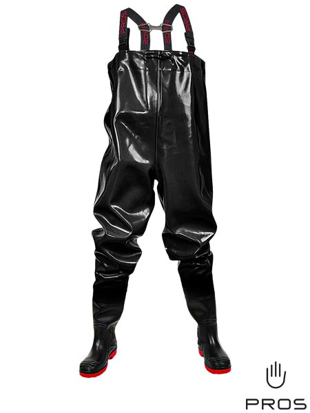 Spodniobuty Strong.- wodoochronna, wytrzymała guma Rubber New Generation, nie wymagająca konserwacji- gramatura 1000 g/m2- wysoka odporność na uszkodzenia mechaniczne- wgrzane na stałe kalosze zabezpieczające przed poślizgnięciem na podłożu stalowym pokrytym glicerolem i podłożu ceramicznym pokrytym roztworem laurylosiarczanu sodu (typ ochrony OB FO E SRC)- regulowane szelki z elastycznej, szerokiej gumy- wytrzymałe szwy zgrzewane obustronnie