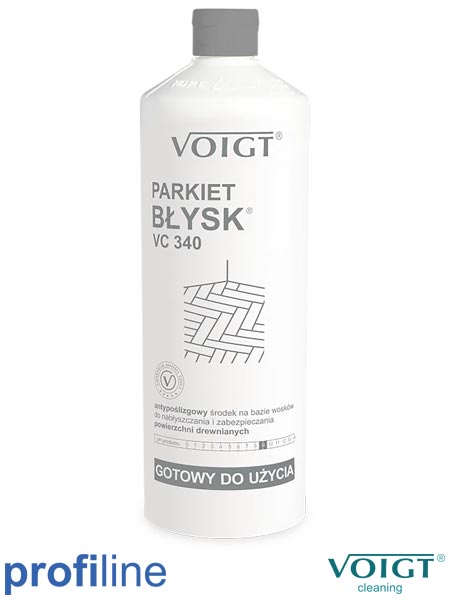 Antypoślizgowy środek do powierzchni drewnianych PARKIET BŁYSK VC340.- emulsja na bazie wosków i polimerów nabłyszcza powierzchnie drewniane, uprzednio zaimpregnowane lakierami- charakteryzuje się wysokim stopniem połysku, nie przyjmuje kurzu i brudu oraz nie powoduje poślizgu- polecany do mycia parkietów, boazerii oraz schodów drewnianych- doskonale nadaje się do mycia bieżącego nawet zmatowionych i nielakierowanych powierzchni drewnianych- pH: 8-9- pojemność: 1 l