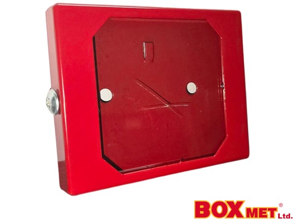 Szafka na klucz ewakuacyjny ECO .- wymiary: 80mm x 100mm x 18mm- wykonana z blachy stalowej czarnej DC01, pokrytej czerwoną farbą proszkową- z oknem z plexi- podkład cynkowy- zawieszka na klucz