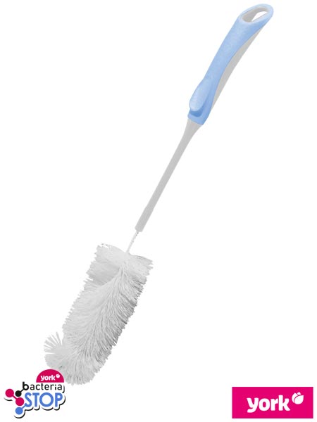Szczotka do butelek BACTERIA STOP.- antybakteryjne włosie i rączka zapobiegają namnażaniu się bakterii na powierzchni produktu- szczotka doskonale czyści większe butelki i wazony- posiada specjalne oczko, które pozwala powiesić ją na haczyku- higieniczna, antypoślizgowa rączka z wygodnym oparciem na kciuk