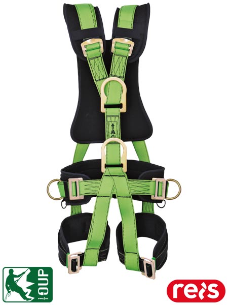 Szelki bezpieczeństwa z uprzężą do pozycji siedzącej.- dwa pierścienie w kształcie litery D – piersiowy i grzbietowy wykonane ze stali o dużej wytrzymałości- dwa boczne pierścienie w kształcie litery D w pasie do pozycjonowania- jeden przedni pierścień w kształcie litery D na wysokości pasa umożliwiający dostęp do liny- regulowane pasy na wysokości pasa użytkownika oraz ramion i ud- wygodne podkładki na pasach na udach zapewniające dodatkowy komfort- taśma szerokości 44 ±1 mm wykonana z poliestru- szycie wykonane czarnymi nićmi z poliamidu, odpornymi na rozciąganie- spełnia wymagania norm EN361, EN358 oraz EN813