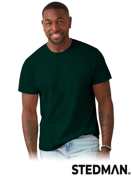 T-shirt męski ST2100.- 100% wysokogatunkowej bawełny, jednołożyskowej (kolor szary: 85% bawełny/15% wiskozy)- gramatura 185 g/m2- bez szwów bocznych- taśma wzmacniająca szwy rękawów