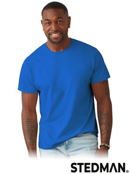 T-shirt męski ST2100.- 100% wysokogatunkowej bawełny, jednołożyskowej (kolor szary: 85% bawełny/15% wiskozy)- gramatura 185 g/m2- bez szwów bocznych- taśma wzmacniająca szwy rękawów