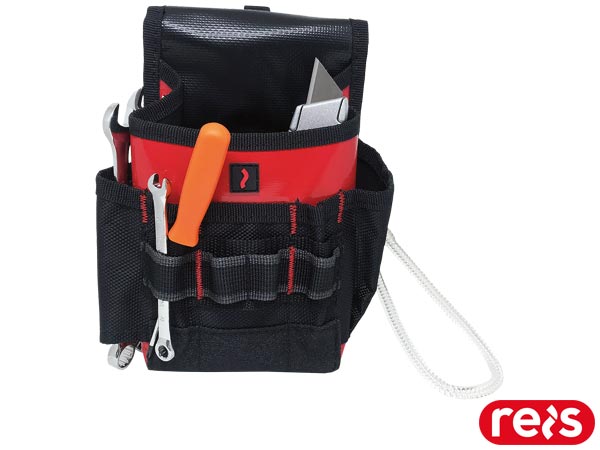 Torba na narzędzia.- wykonana z poliestru- wewnętrzna kieszeń powlekana PVC- siedem kieszeni na narzędzia: jedna duża oraz sześć mniejszych- mocowanie z taśmy wewnątrz i na zewnątrz torby na narzędzia- zakładana na pasek, dodatkowo metalowy uchwyt- elastyczna linka z boku- idealna dla monterów