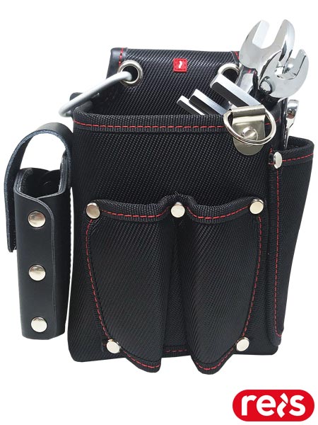 Torba na narzędzia.- wykonana z poliestru- dodatkowo wzmocniona nitami- pięć kieszeni na narzędzia: jedna duża oraz cztery mniejsze- zakładana na pasek, dodatkowo metalowy uchwyt- usztywniana- idealna dla monterów