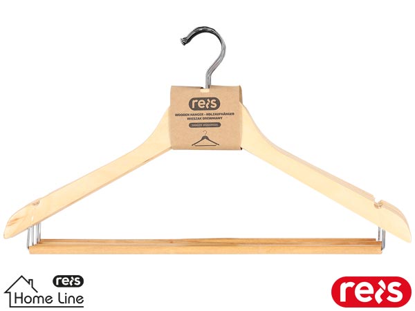 Wieszak.- drewniany z poprzeczką- chromowany uchwyt z żelaza- szerokość poprzeczki: 44,5 cm- do uniwersalnego użytku- gwarantuje bezpieczeństwo dla tkanin- zapewnia wentylację odzieży w garderobie- najmniejsza jednostka sprzedaży - 5 sztuk