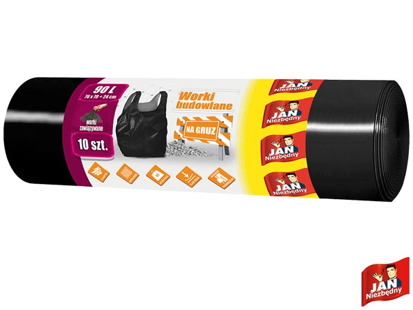 Worki budowlane na gruz z uchwytami.- trzywarstwowe- elastyczne i bardzo mocne- worki zawiązywane- idealne do prac remontowych- w kolorze czarnym- pojemność: 90 l- w opakowaniu 10 szt.