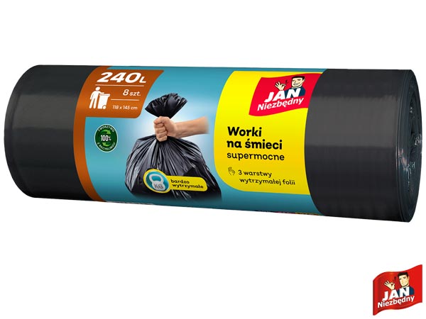 Worki na śmieci LD.- wyjątkowo mocne i bardzo szczelne- w kolorze czarnym- pojemność: 240 l- w opakowaniu 8 szt.