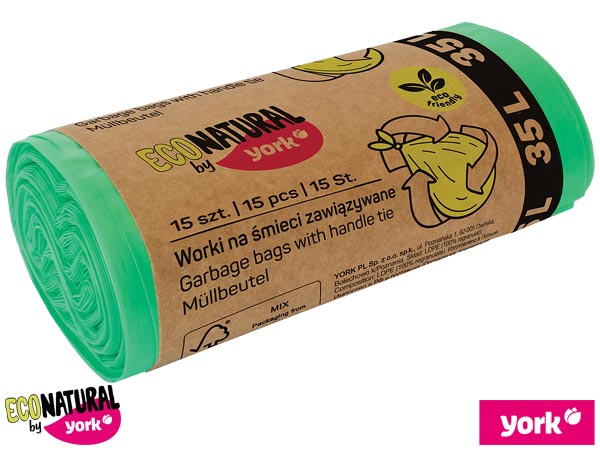 Worki na śmieci z lini ECONATURAL.- wykonane w 100% z regranulatu LDPE- mocne i wytrzymałe - nie rwą się, wytrzymują duży ciężar- pasują zarówno do koszy o okrągłym, jak i prostokątnym przekroju i dokładnie wypełniają dno, dzięki zastosowaniu zgrzewu gwiaździstego- każdy worek zakończony jest falą, która umożliwia zawiązanie i wygodne wyrzucenie worka- pojemność: 35 l- w opakowaniu 15 szt.