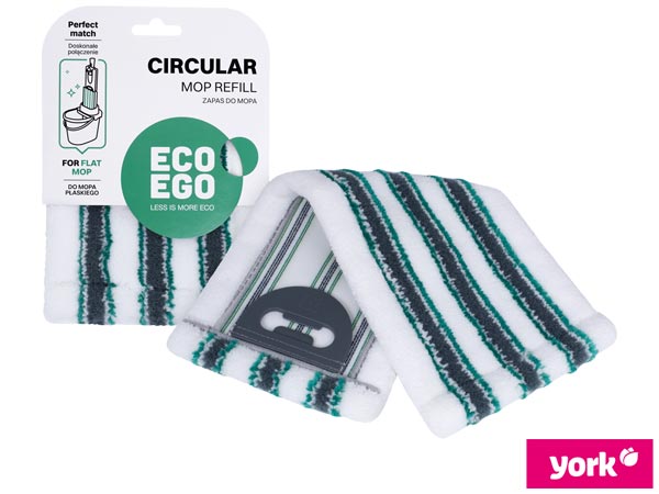 Zapas do mopa płaskiego CIRCULAR POWER.- wykonany w 20% z poliamidu oraz w 80% z poliestru przetworzonego w procesie recyklingu- uniwersalny i funkcjonalny mop sprawdzi się do mycia każdej powierzchni – paneli, delikatnego parkietu, płytek, linoleum i naturalnego kamienia- elastyczna i miękka mikrofibra nie wpływa negatywnie na stan materiałów szczególnie podatnych na zarysowania i niszczenie