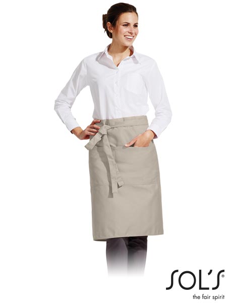 Fartuch typu zapaska.- materiał: 65% poliester, 35% bawełna- gramatura: 240 g/m2- krótka- posiada dwuczęściową kieszeń- wygodna w noszeniu