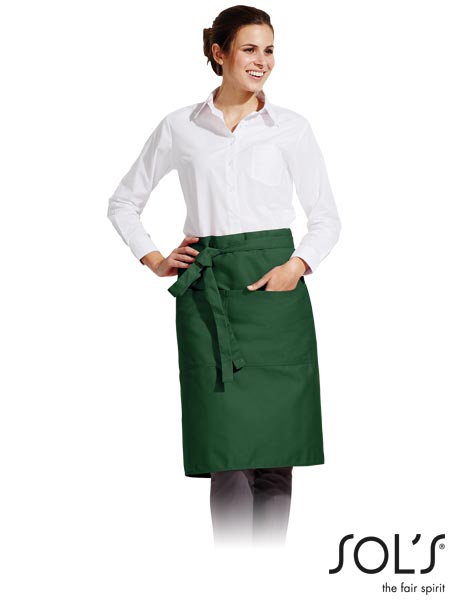 Fartuch typu zapaska.- materiał: 65% poliester, 35% bawełna- gramatura: 240 g/m2- krótka- posiada dwuczęściową kieszeń- wygodna w noszeniu