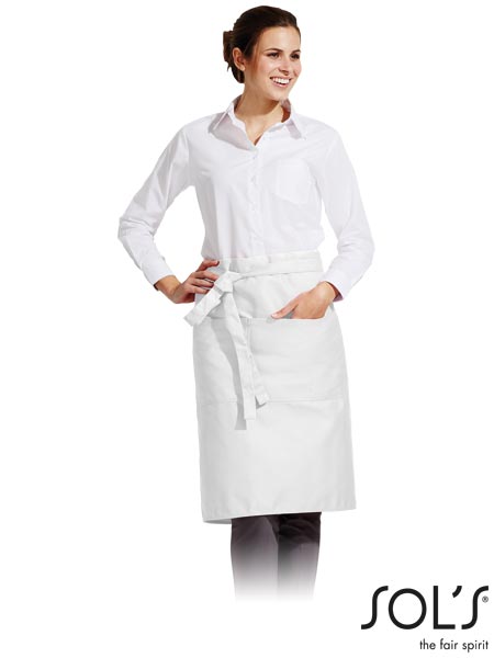 Fartuch typu zapaska.- materiał: 65% poliester, 35% bawełna- gramatura: 240 g/m2- krótka- posiada dwuczęściową kieszeń- wygodna w noszeniu