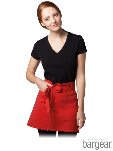 Krótka zapaska.- materiał: 100% bawełna- gramatura: 280 g/m2- z przodu podwójna kieszeń- 1 kieszeń zapinana na zamek błyskawiczny i 1 otwarta kieszeń- bawełna typu Twill- wiązanie na mocne tasiemki z materiału- może być prana w temperaturze do 60° C