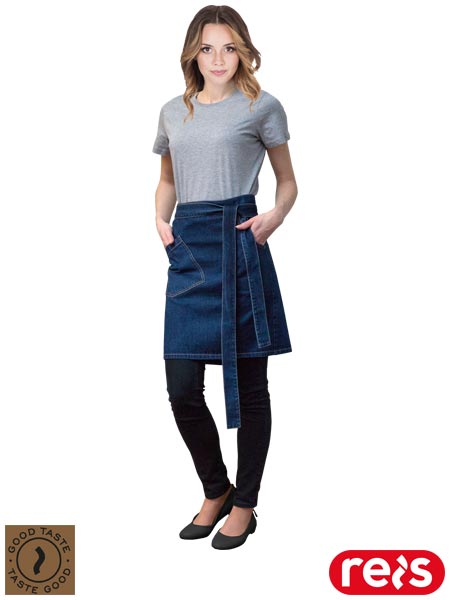 Zapaska ochronna wykonana z jeansu.- tkanina: 100% bawełna- gramatura 360 g/m2- wiązana z tyłu na pasek dzięki czemu możliwe jest lepsze dopasowanie do sylwetki- rozmiar 80x49 cm posiada dwie kieszenie po zewnętrznej stronie- rozmiar 90x50 cm oraz 90x80 cm posiada trzy kieszenie po zewnętrznej stronie- dwie szlufki do przeplecenia pasków wiążących- dodatkowa szlufka na ścierkę- pranie w temperaturze do 30°C