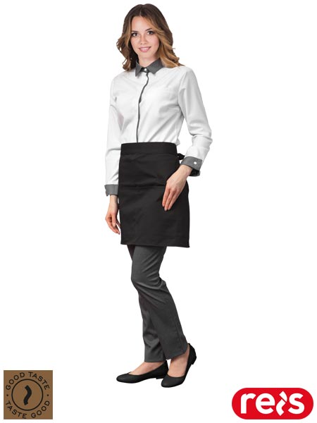 Zapaska ochronna.- tkanina: 65% poliester, 35% bawełna- gramatura 245 g/m2- wiązana z tyłu na pasek dzięki czemu możliwe jest lepsze dopasowanie do sylwetki- trzy kieszenie w dolnej części- dodatkowa szlufka w pasie- pranie w temperaturze do 30°C