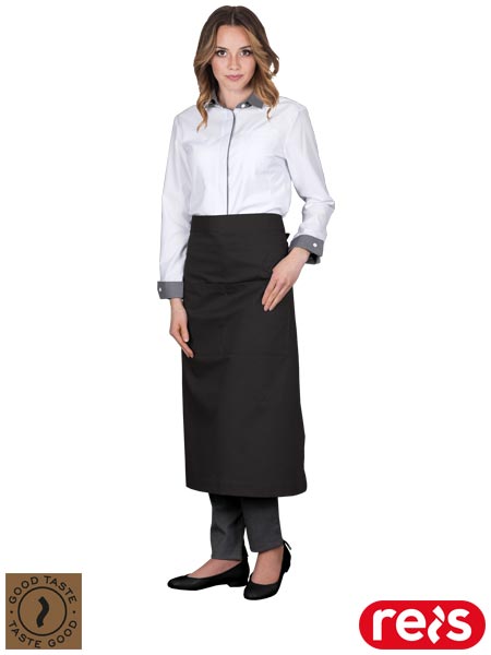 Zapaska ochronna.- tkanina: 65% poliester, 35% bawełna- gramatura 245 g/m2- wiązana z tyłu na pasek dzięki czemu możliwe jest lepsze dopasowanie do sylwetki- trzy kieszenie w dolnej części- dodatkowa szlufka w pasie- pranie w temperaturze do 30°C