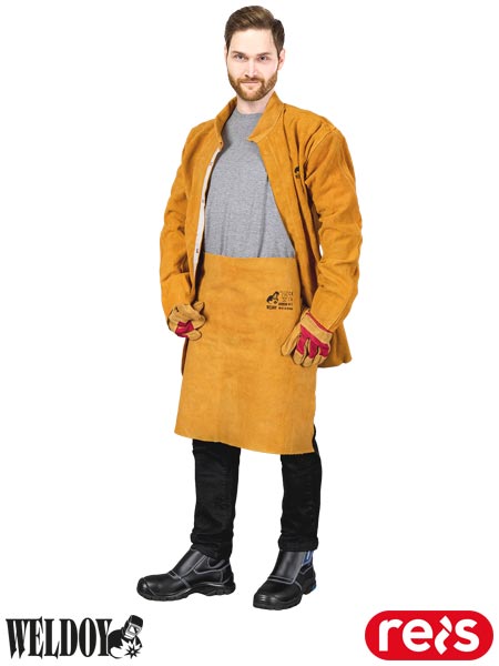 Zapaska spawalnicza skórzana.- skóra bydlęca dwoinowa- wymiar: 55x65 cm- szyta trudnopalnymi i odpornymi na gorąco nićmi z kevlaru- wiązana z tyłu na pasek dzięki czemu możliwe jest lepsze dopasowanie do sylwetki- zgodna z normą EN11611 (A1) oraz EN13688