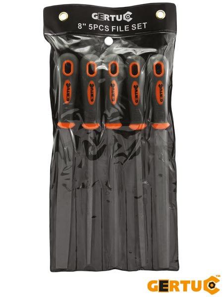 Zestaw pilników do metalu.Stal T12.HRC >62.Zestaw zawiera 5 pilników: płaski, półokrągły, okrągły, trójkątny, kwadratowy.