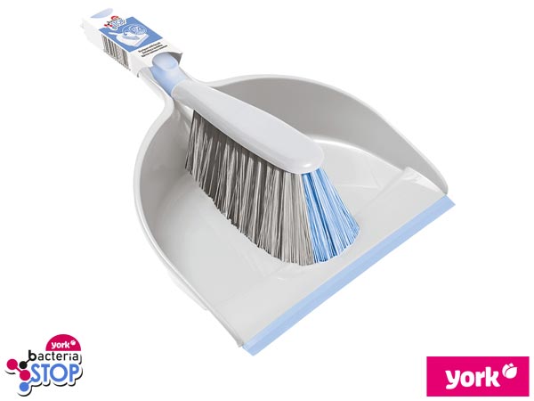 Zmiotka z szufelką BACTERIA STOP.- zestaw wykonany z wytrzymałego tworzywa sztucznego, a uchwyt szufli składa się ze specjalnego materiału, który zapobiega wyślizgnięciu się szufli z ręki- posiada wyjątkowo gęste dwukolorowe włosie, średnio-twarde oraz miękkie, które ułatwia zmiatanie- kąt nabicia został ustawiony w taki sposób, aby zwiększyć zasięg zmiotki i ułatwić zamiatanie odpowiednio dużej powierzchni- szufelka jest wyposażona w gumową krawędź, co ułatwia zebranie brudu na szufelkę- system klik umożliwia mocowanie zmiotki z szufelką, a specjalne oczko powala powiesić zestaw ma haczyku.