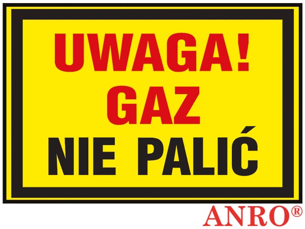Znak uzupełniający - gaz „Uwaga! Gaz nie palić”.- format znaku L w rozmiarze 250x350- wykonany z: P - płyta PCV
