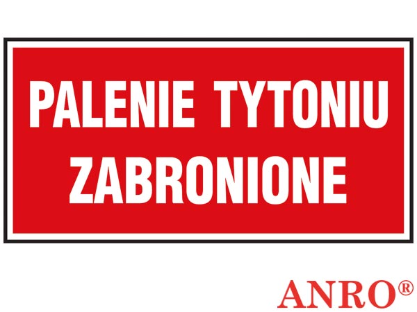 Znak ochrony ppoż. „Palenie tytoniu zabronione”.- znak w rozmiarze 200x400- wykonany z: F - folia samoprzylepna, P - płyta PCV