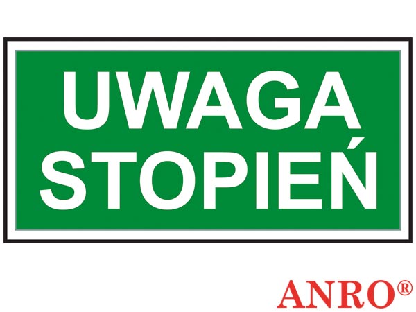Znak ewakuacyjny „Uwaga stopień”.- format znaku A w rozmiarze 150x300- wykonany nadrukiem fotoluminescencyjnym: FS - folia samoprzylepna, PT - płyta PCV